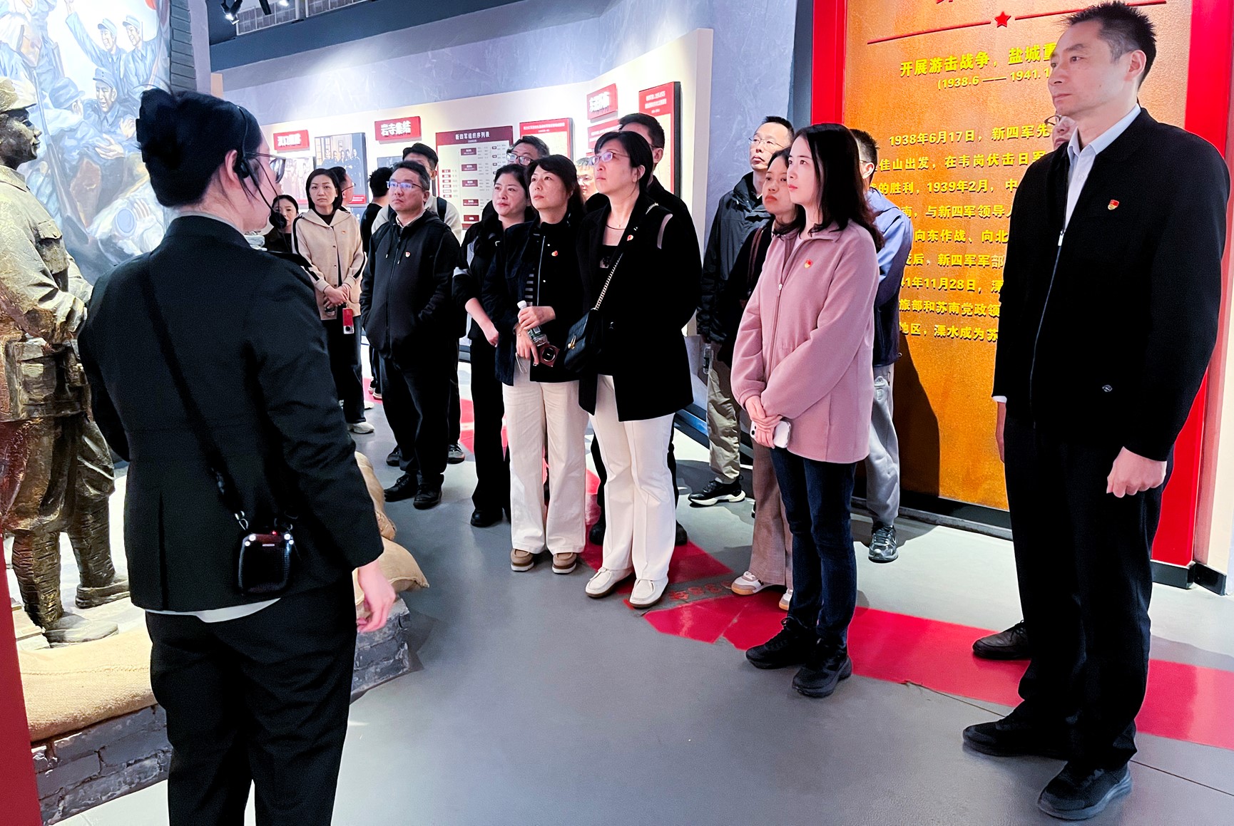 今年是纪念中国人民抗日战争暨世界反法西斯战争胜利80周年,教师们怀着对革命先烈们的无比崇敬之情开启红色印记探寻之旅。首先来到中国新四军历史研究馆,研究馆全景式地展现了新四军诞生和发展的历程、重大战役、重大历史事件,重点展示了抗日战争时期新四军从皖南东进苏南后,以李巷为中心开辟抗日根据地的壮阔历程。接着前往陈毅、李坚真等革命将领的旧居,一场跨越时空的精神共鸣在参观中层层递进。教师们深刻领悟到红色李巷的“红”,是革命斗争的燎原星火,是先辈英烈的殷红鲜血,是民族复兴的火红理想。