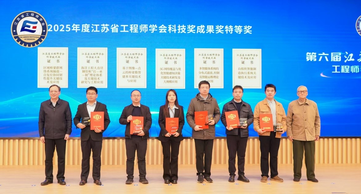 12月5日,第六届江苏工程师大会在江苏省产业技术研究院举行。省科协党组成员、副主席方胜昔,中国工程院院士、省工程师学会理事长缪昌文,中国工程院院士贲德,中国工程院院士刘怡昕,省工程师学会副理事长、长三角国家技术创新中心主任、江苏省产业技术研究院院长刘庆等领导和专家出席会议。大会举行了2025年度江苏省工程师学会科学技术奖颁奖仪式,电控学院史建涛教授牵头的项目荣获特等奖,青年教师岳冬冬、陈闯等为项目主要参与人。这是南京工业大学首次牵头获得江苏省工程师学会特等奖。