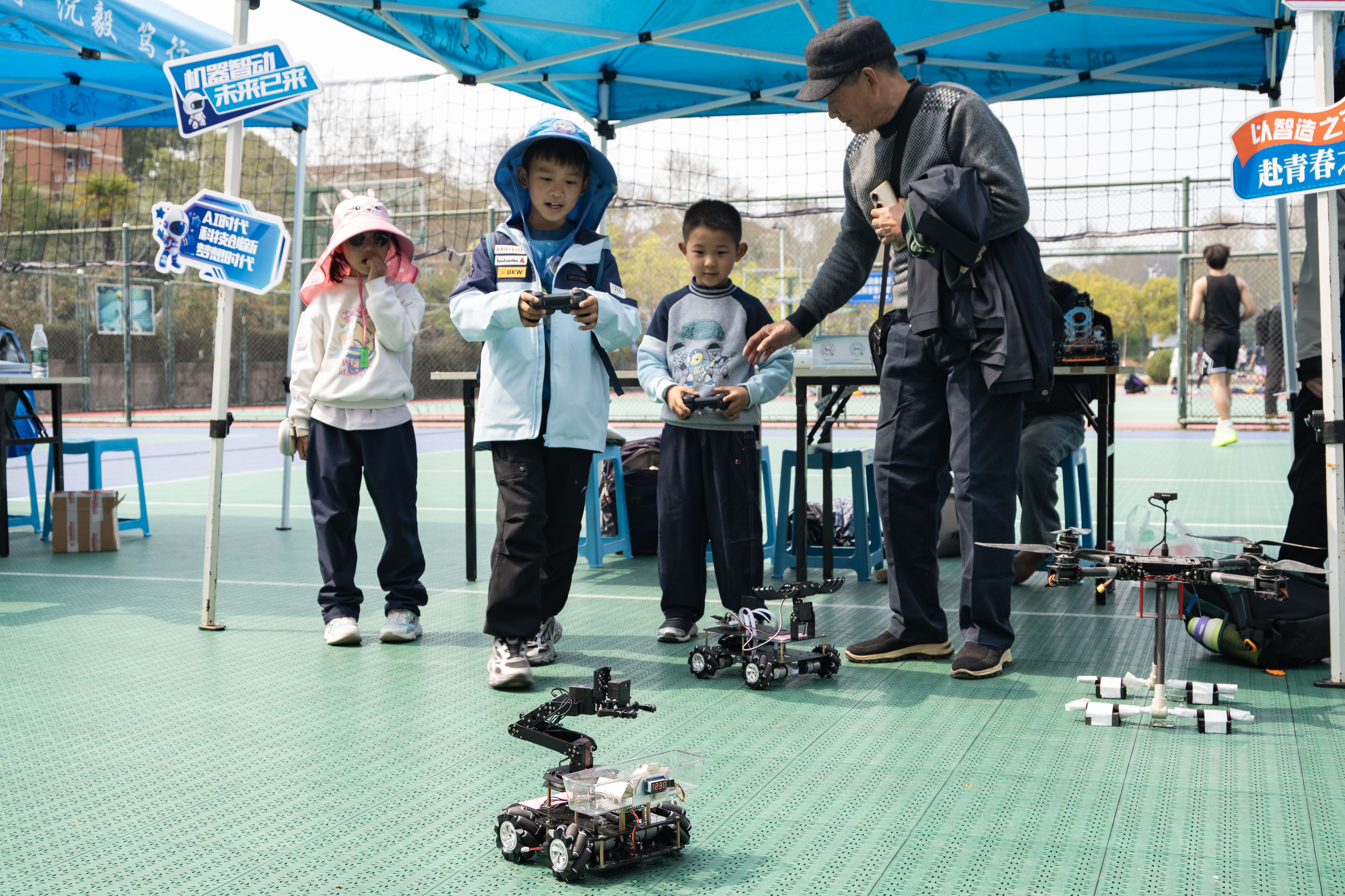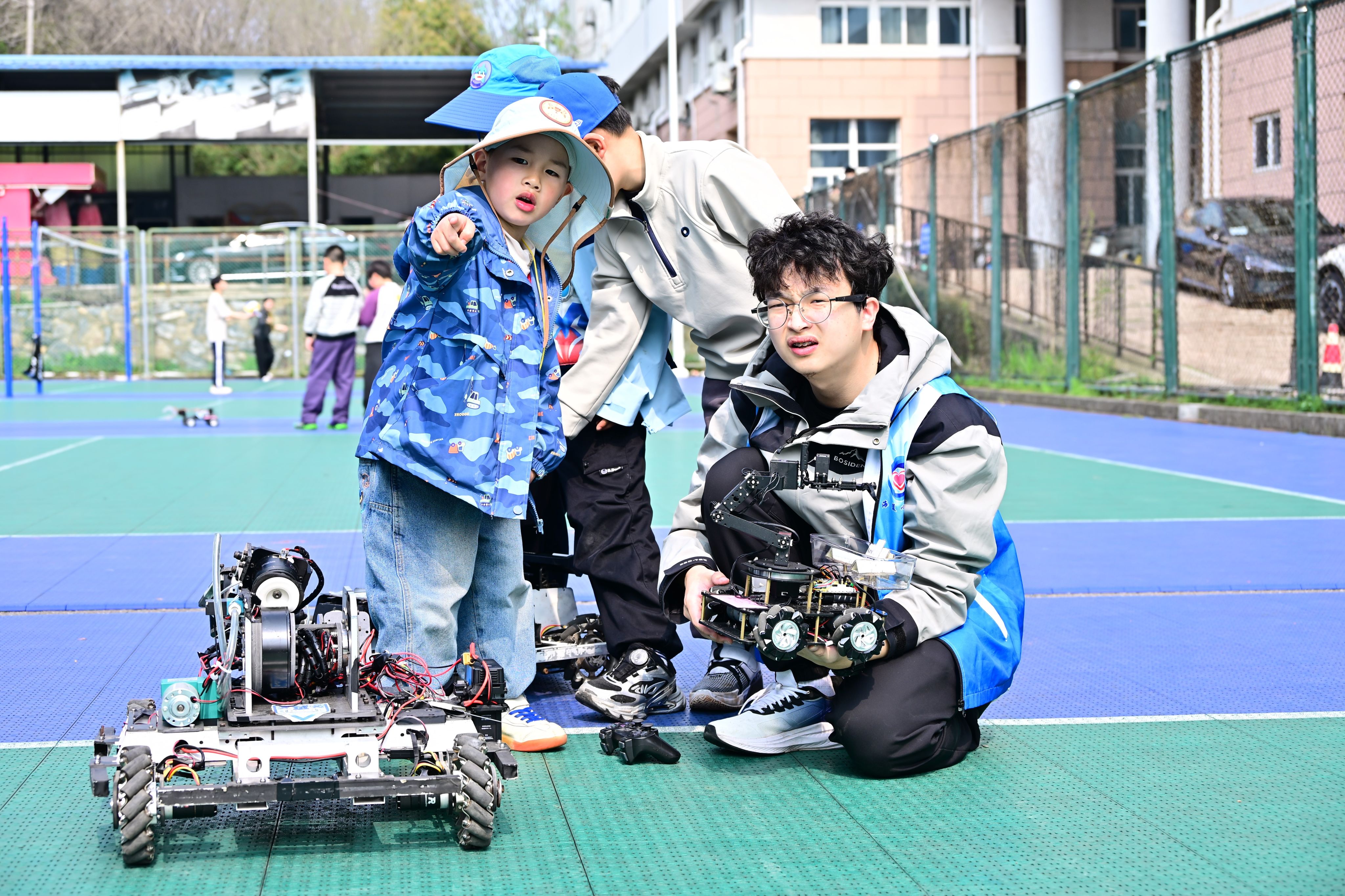 4月1日下午,东苑篮球场变身“科技嘉年华”,我院“玩转机器人·点亮人生梦”主题的专业路演活动精彩上演。本次路演将前沿科技带出实验室,让儿童近距离感受机器人魅力,现场气氛热烈。