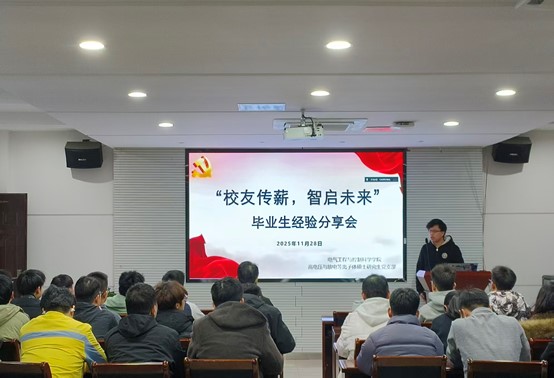 11月28日晚,电气工程与控制科学学院高电压与放电等离子体团队硕士研究生党支部于崇德楼D416举办“校友传薪,智启未来”毕业生经验分享会,活动由党支部宣传委员肖洋主持,团队内60余名研究生积极参与。