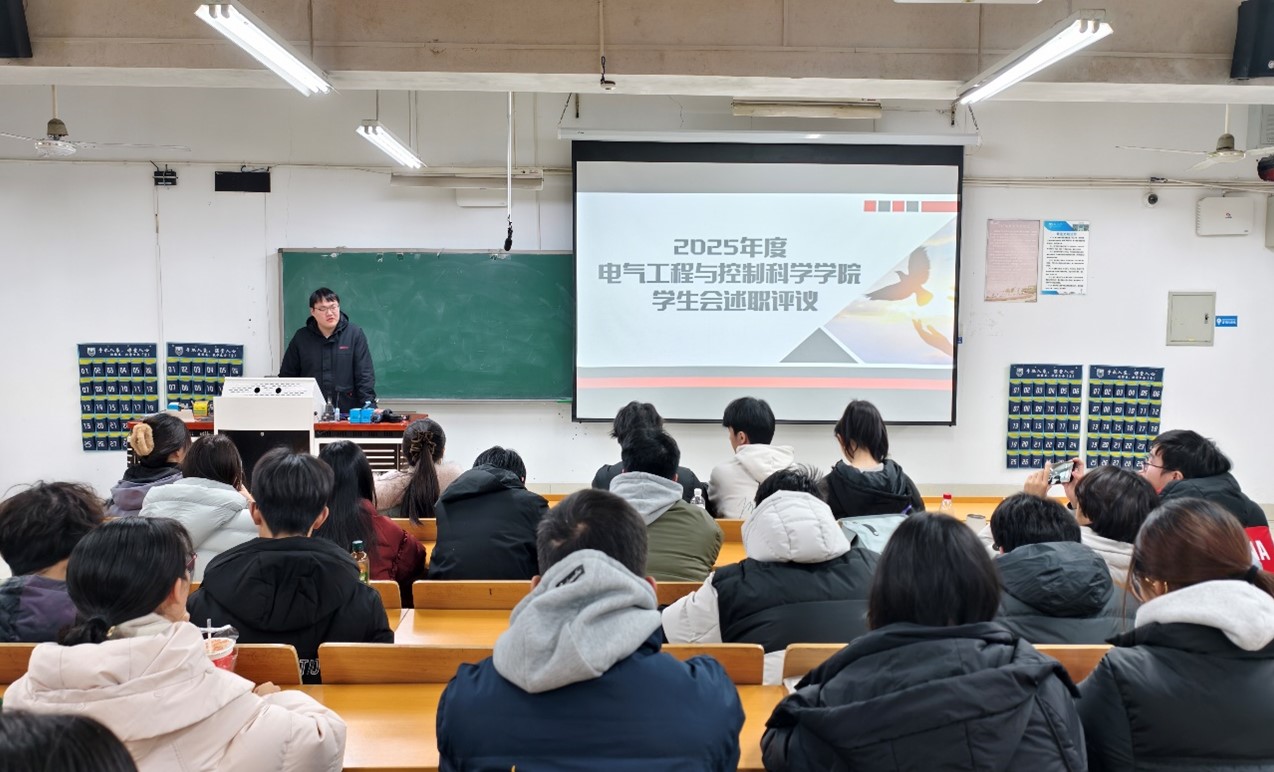 12月25日,电气工程与控制科学学院学生会2025-2026学年第一学期述职评议会在同和113教室召开。学院辅导员贾琼、学生会全体成员参加,会议由主席团成员张智健主持。
